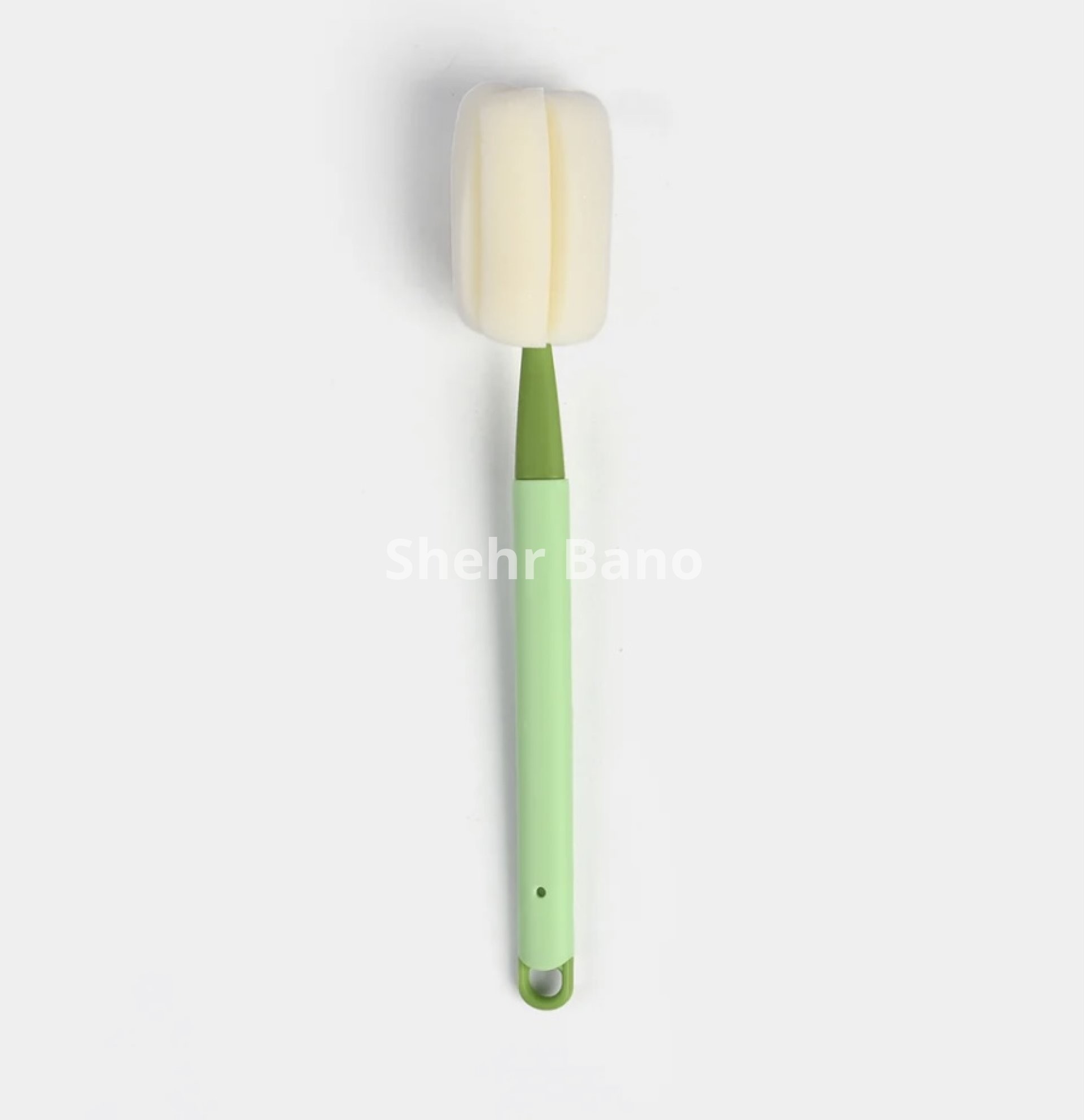 This sponge brush helps effectively clean a baby's feeding bottle, easily reaching everywhere.