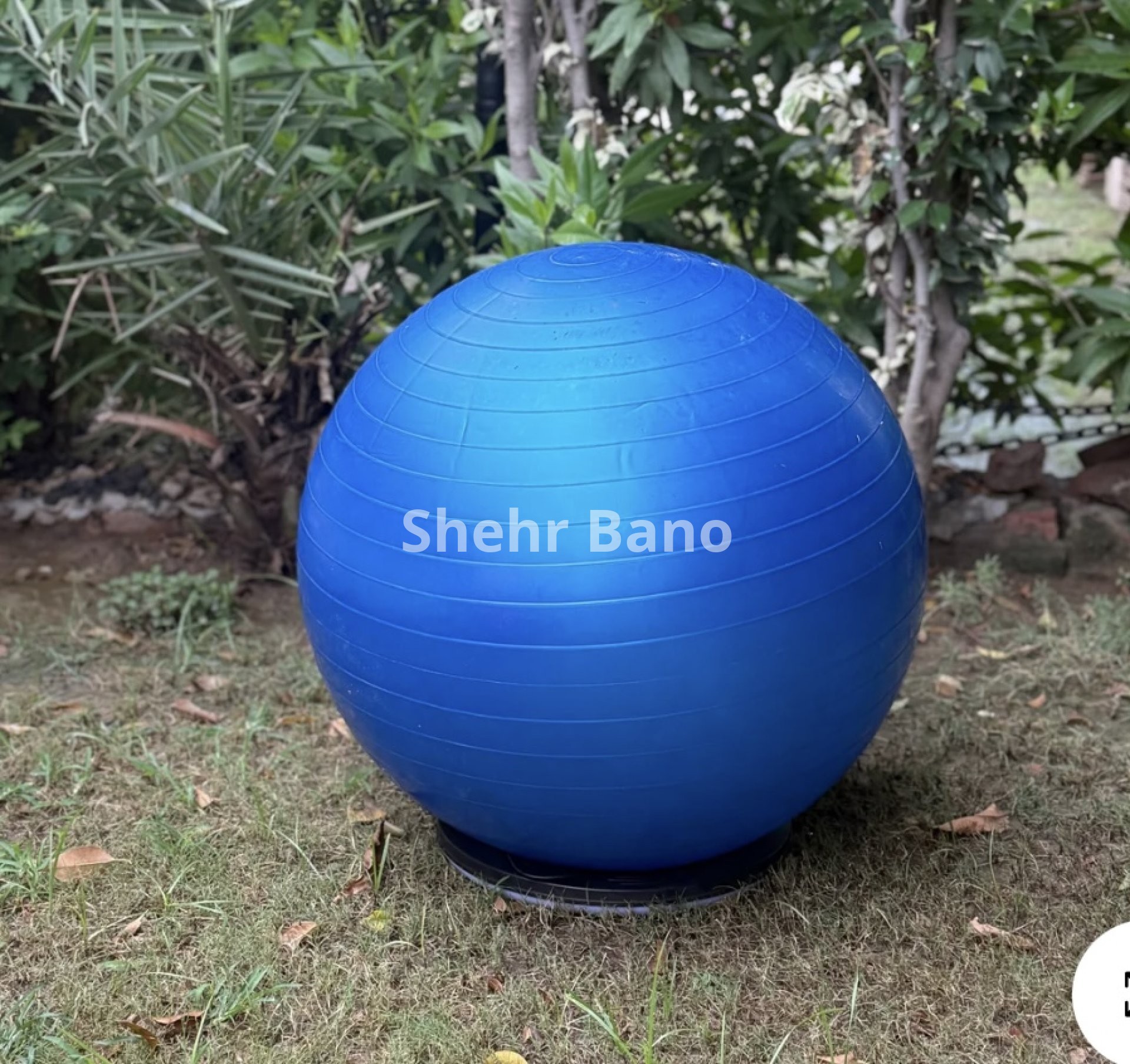 Also called exercise ball, stability ball, or balance ball